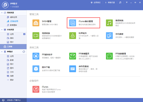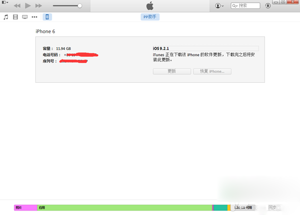 1、設備連接PP助手電腦版/iTunes進行備份。