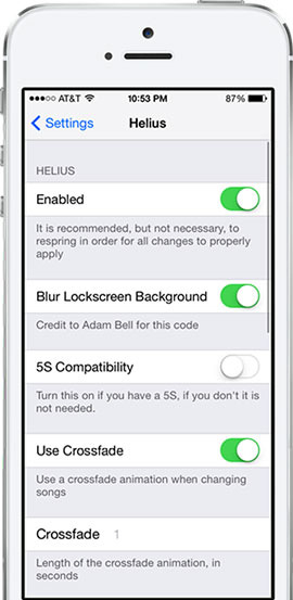 安裝完成後進入設置,你可對【Helius】進行設置,首先點擊【Enable】開啟開關,然後可啟用/禁用背景模糊,啟用/禁用交叉淡入淡出的動畫效果以及修改動畫的持續時間。