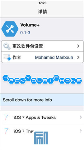iOS7.1.1完美越獄插件有些了?當你在聽音樂的時候是否對那古板的音量加減調整界面感到厭煩了,如果你有這樣的感覺,不妨試試這款由Marbouh開發的全新插件Volume+。