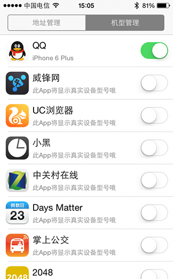 7、選擇你想使用修改後機器型號的APP。