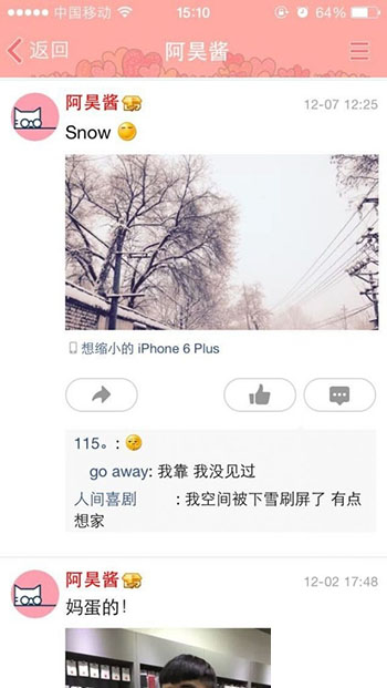 QQ空間來自iphone6 plus 客戶端效果。