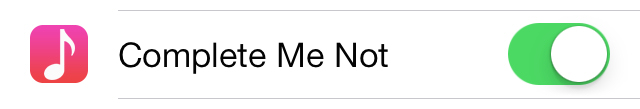 安裝好 Complete Me Not 後,進入“設置”應用程序,向下滑動設置頁面,你會發現該插件的設置開關(如下圖),打開即可。插件作者將此開關放到了首級菜單,省去了繁瑣的查找。