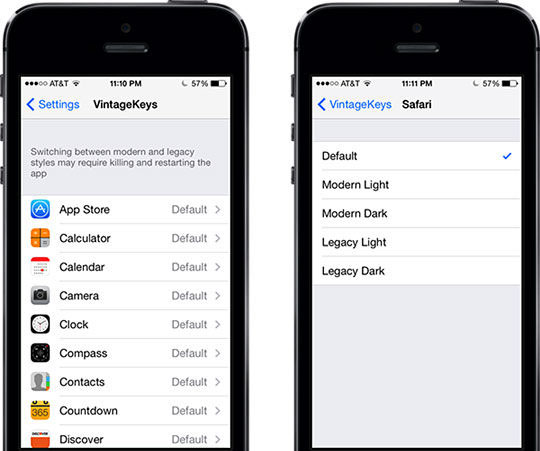 VintageKeys是一款可以修改鍵盤樣式的插件,你可以選擇不同的 iOS 7默認的黑白兩色,也可選擇變為 iOS 6的擬物化樣式