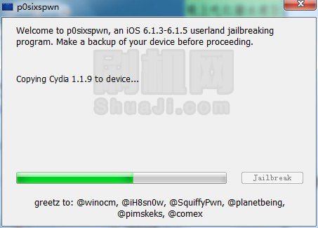 4、然後越獄工具開始為iOS設備安裝cydia。