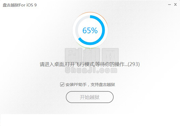 5、正在為設備進行越獄,當進行至提示“請打開飛行模式”時,請打開蘋果設備的飛行模式。