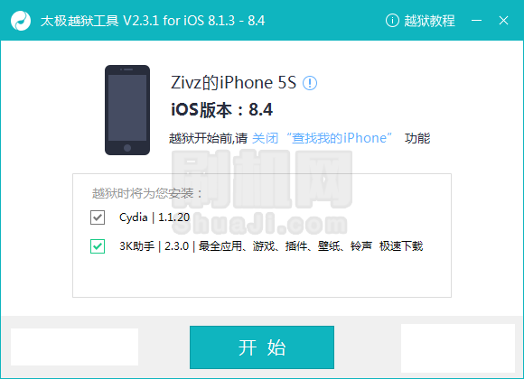 4、點擊“開始”執行越獄。