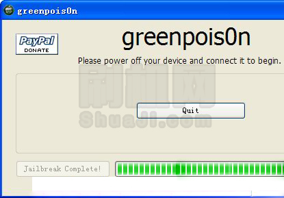 下方的綠色進度條走完後,綠毒顯示越獄成功,點擊quit退出即可