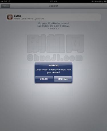 將會彈出窗口詢問是否刪除loader程序,點擊Remove刪除它,按home鍵退出, iPad將會自動重啟