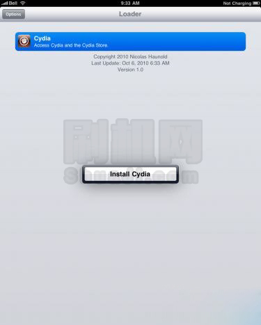 打開後進入如下圖所示界面,點擊cydia ,然後點擊 Install Cydia