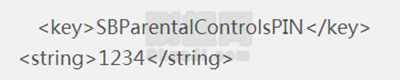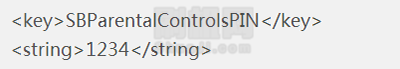 打開找到SBParentalControlsPIN字段,就能看到密碼了,是用明文保存的。如果沒有該字段,對於iOS7,就不存在該字段,就需要自己添加。方法如下: