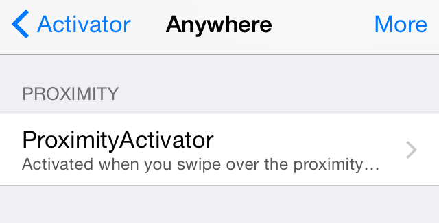 ProximityActivator 相當於 Activator 的一款增強插件,在安裝以後你就可以在 Activator 的設置面板內找到它的相關專區。除此之外你也可以在設置內找到 ProximityActivator。
