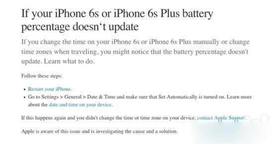 蘋果本周在官方支持頁面上發布了一篇有關 iPhone 6s 和 iPhone 6s Plus 電池百分比不更新的消息,表示若是將時間設置成手動更新、或者是在旅游時改變了時區,那麼這兩款手機可能會遇到電池百分比不更新的情況。