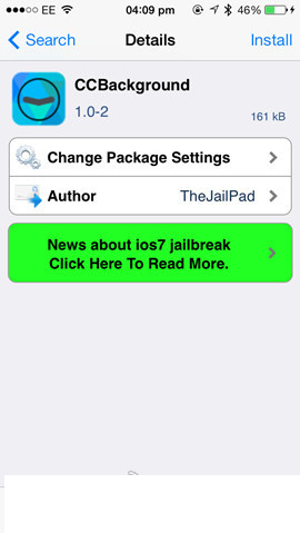 1.進入Cydia搜索【CCBackground】,選擇上述源內插件點擊【安裝】。