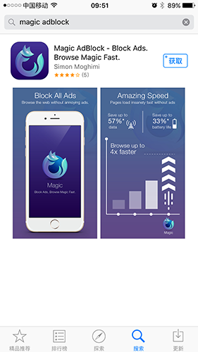相信不少人和筆者一樣,對於國內的諸多網站上的廣告實在是無可奈何,而在網站上嵌入廣告也是國內見怪不怪的一種手段了,90%的國內網站上都有彈出廣告、飄窗廣告等內容,讀者在觀看的時候及其影響體驗,但有沒有很好的解決辦法。不過現在好了,一款名為Magic AdBlock的軟件可以在不越獄的時候即可幫你攔截絕大部分的網站頁面廣告、腳本、CSS圖標等內容,而且這款App可以通過App Store免費下載到。