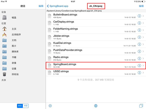 2、進入路徑:/ System / Library / CoreServices / SpringBoard.app / zh_CN.lproj