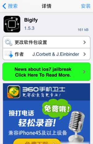1.進入Cydia搜索【Bigify】,點擊【安裝】。