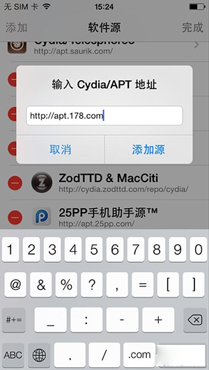 1. 當然,要想享受這一款插件,首要前提便是你的設備已處於越獄狀態,因為只有這樣,你才能開啟Cydia,點擊下方【管理】—【軟件源】—右上角【編輯】—左上角【添加】—添加源地址:http://apt.178com。