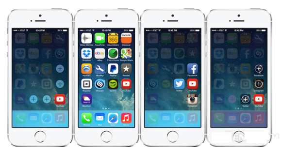 Apex2 的功能其實類似於iOS原生文件夾,不過方式稍稍“花俏”一些,用戶通過一個手勢操作就可以直接在App圖標上添加擴展的應用,同樣的也只需要一個手勢就可以隱藏/打開,下面我們就來試用一下。