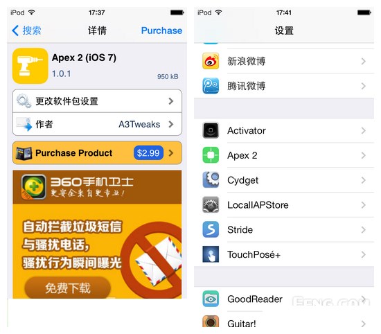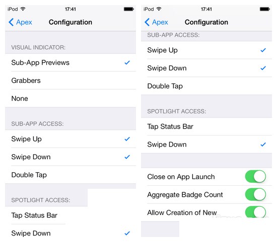 Apex2在BigBoss源收費2.99美元,大家也可以前往威鋒源下載,成功安裝之後打開設置就可以找到,Apex2的設置裡面選項很多,不過都集中在Configuration裡面。