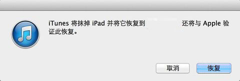 3、 之後iTunes會自動連網檢測適合當前iPad的最新固件系統,並提示我們是否要恢復,必須點【恢復】啊。