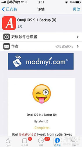 1. 添加poomsmart.github.io/repo這個源,下載Emoji9 Fix插件和iOS9.1系統emoji表情的字體文件Emoji iOS9.1 Backup。
