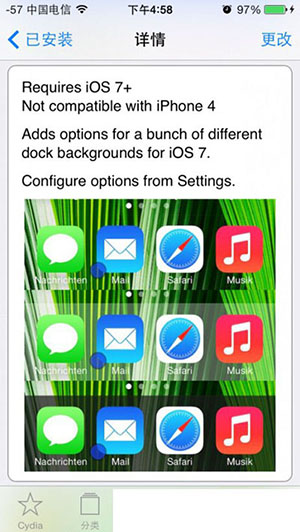 許多用戶根據完美越獄教程將自己的蘋果機越獄了,越獄之後可以安裝許多插件,我們今天給大家介紹的DockShift是一款美化插件,安裝DockShift之後您可以自定義Dock欄透明效果,除了全透明,DockShift同時還提供多種不同風格的Dock模版供大家使用。