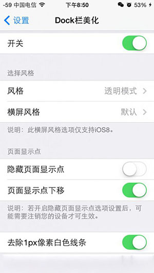 DockShift漢化版下載:點擊這裡下載,下載得到的是deb格式的文件,不會安裝的可以點擊這裡查看Deb插件安裝教程,或者添加源地址(repo.hackyouriphone.org),然後直接搜索DockShift安裝就可以了。