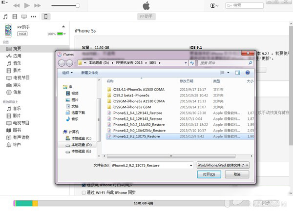 1、根據機型下載好對應的iOS9.2固件版本【iOS9.2固件下載地址】。