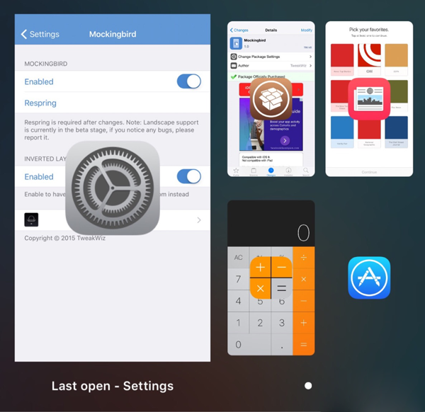 1.Mockingbird是一款近日上架Cydia的插件(售價1.99美元),通過將應用切換卡片和通知中心通知融合,為iOS的應用切換帶來了全新的體驗。
