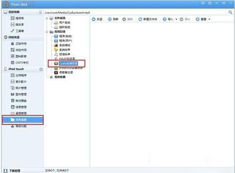 2.然後連接上需要安裝下插件的設備,依次選擇"文件系統"——"Cydia安裝目錄"。