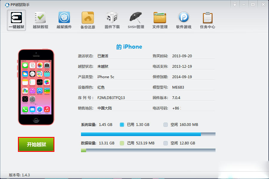2:PP越獄助手識別iOS 設備後點擊開始越獄。