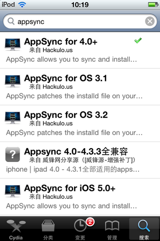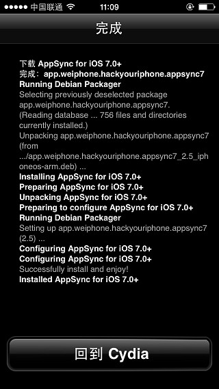 7:安裝完成後返回cydia 至此Appsync已經安裝完成。