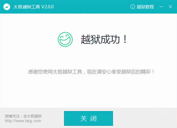 5.越獄完成後,設備會自動重啟,越獄工具會提示“越獄成功”。