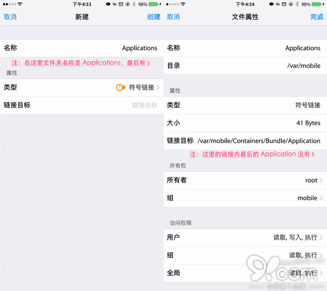 第一步:用 iFile 創建一個文件夾快捷方式鏈接到 iOS 8 後 Application 文件夾的新路徑