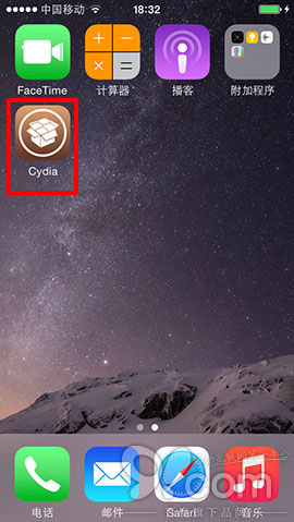 6.打開設備,屏幕上出現Cydia圖標,這時請保證你的蘋果設備連接網絡正常(即能上網狀態),然後打開Cydia,Cydia自動載入一段時間後,設備會自動注銷重啟。再次打開Cydia,你會看到最新的Cydia版本1.1.16.