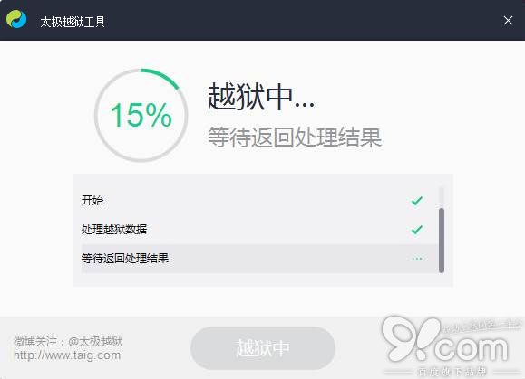 5.越獄完成後,設備會自動重啟,越獄工具會提示“越獄成功”。