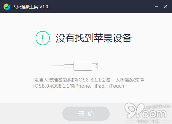 2.將你的iPhone/iPad/iPod touch設備,使用數據線與電腦連接。雙擊打開越獄工具,等待越獄工具自動識別您的設備以及iOS系統版本。