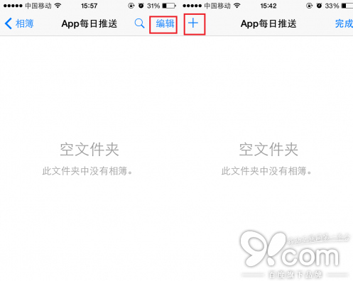 第二步,進入到文件夾內,點擊右上角的“編輯”後,在點解左上角的“+”,在文件夾內創建相冊。