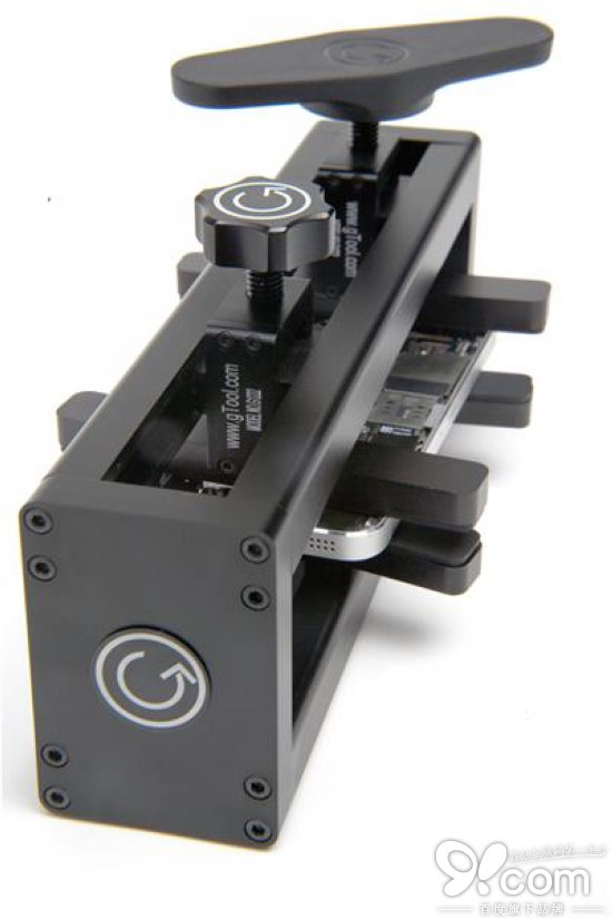 gTools 公司推出了名為 PanelPress 的工具,公司聲稱也支持 iPhone 5 和 5s ,但現在出現拗曲問題的只有 iPhone 6 系列,換言之這個工具根本就是 iPhone 6 專用。這工具像一個矩形的箱一樣,把 iPhone 以 U 形放入去,把遭到拗曲的部分放到工具下方的托架做支點,然後調校兩端位置作壓力點,之後扭動上方螺絲向 iPhone 兩邊施壓。不出一會,你的 iPhone 6 開始變直了。這個網站也有影片示范,因為網站設計問題,你可以進入這個網站收看。