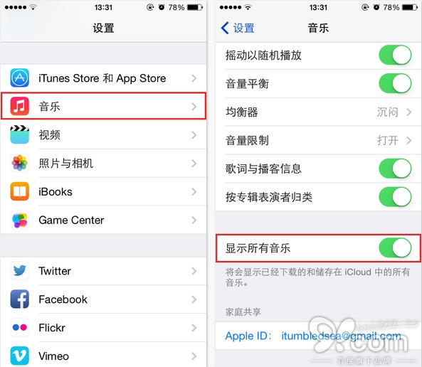 第三步:打開「顯示所有音樂」選項右方的開關。