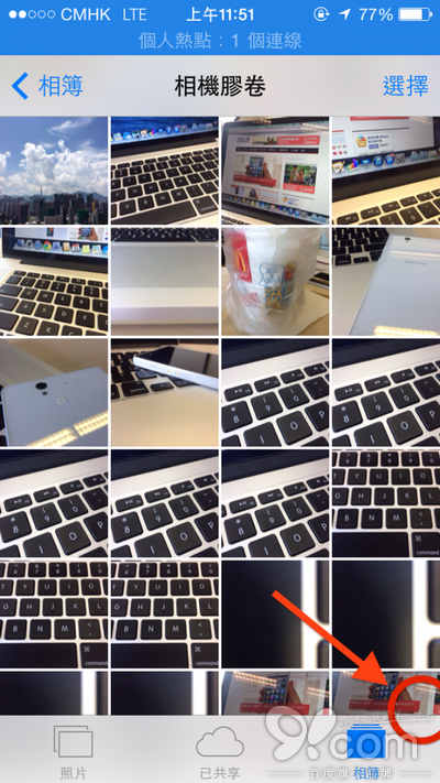 用戶只需要按一下圖中紅圈的位置,顯示的相片位置就會自動返回最新(最下方)的位置!適用原生相片應用(photo app )