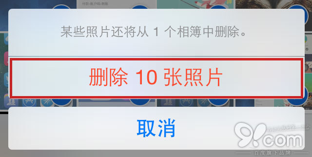 第五步:設備會彈出刪除確認面板,此時我們只需點擊刪除選項就可以一次性刪除剛剛選擇的多張照片。