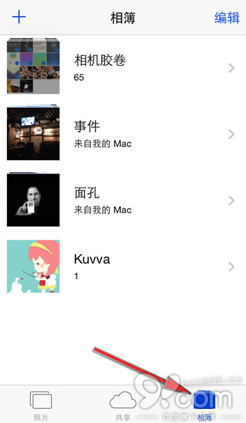 第二步:點擊選擇屏幕底部的「相簿」選項卡。此時你應該能看見 iPhone 上所有專的相簿列表。