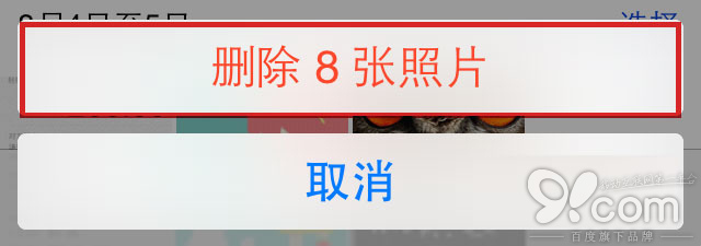 第六步:設備將會彈出刪除確認面板,點擊刪除選項即可將已選中的多張照片一次性全部刪除。
