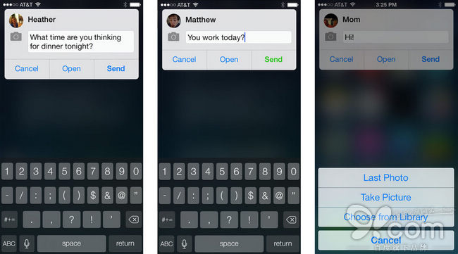 在 iOS 7 中最讓我們困擾的便是字體的層次感不強,多種多樣的字距、字重、尺寸,極其容易導致視覺上的混淆,看起來更是讓人感到千人一面,難以分辨。而在 iOS 8 的快速回復功能中這個問題依舊存在,盡管可以在設置中調節字體大小,但是回復文本的信息文字尺寸始終保持在 24pt,可讀性不強不說,還容易使人產生視覺疲勞。