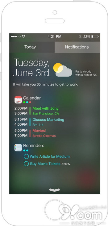 想象一下,如果通知中心沒有按鈕的外輪廓形狀和雜亂的分割線,整個界面將會更加清爽,同時讓用戶直接與內容交互——沒有裝飾,只有內容,內容為王。蘋果不應該強迫用戶去操作或去看一些復雜的東西,應以高可適應性和直觀性為主。或者應該這樣變通一下,提供多種風格選擇和界面。只有這樣,才能吸引更多不同的用戶,蘋果才能擁有更多樣的用戶群。