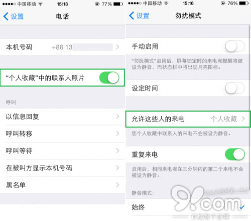 如果覺得個人收藏的界面有點亂的話,你可以在“設置”-“電話”中,將聯系人照片關閉,就會清爽很多了。另外,個人收藏也有非常妙的用處噢~就是在你打開“勿擾模式”的小月亮時,可以讓個人收藏裡的電話不被阻止,是不是超貼心的~再也不用擔心接不到女友電話了【當然還是首先你得…
