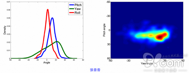 在分析中應用到空氣動力學的俯仰(Pitch)、扭轉(Yaw)及橫擺(Roll),Pitch是指鼻尖向相機下方或是上方,Yaw則是表示左臉或是右臉,Roll 用來表示臉傾斜的角度。