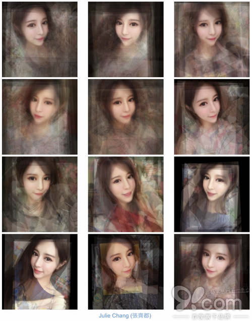 一樣,依然可以用到 Pitch、Yaw 及 Roll 進行解釋,不過由於較難理解,所以這一次不把重點放在數據上,這一次在 Julie Chang 的眾多自拍姿勢中,選出了 12 種具代表性的自拍姿勢。利用重疊圖片的技巧,可以看到自拍的姿勢。簡單來說,自拍姿勢就是使用以上所得出的角度,加以應用。
