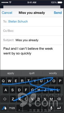 此外,iOS 8 系統中的輸入法也加入了更加智能的QiuckType。其會對你輸入的內容進行預測,給出推薦的單詞,同時也根據用戶的輸入習慣不斷調整推薦的內容,讓用戶在輸入文本的時候有更好的體驗。而QiuckType這項功能同樣支持中文輸入。